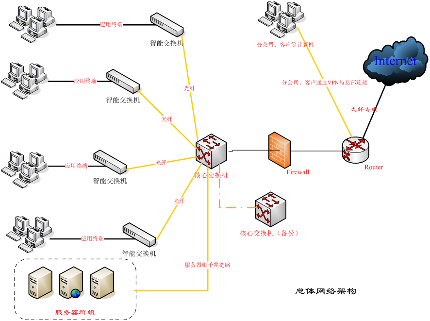 通過合理規(guī)劃設(shè)計,建設(shè)完成了信息中心機(jī)房建設(shè)和各樓層的網(wǎng)絡(luò)覆蓋,滿足了******5層樓的網(wǎng)絡(luò)接入,實(shí)現(xiàn)了******商家和物業(yè)辦公網(wǎng)的有效隔離。整個項目已于2014年8月交付使用。